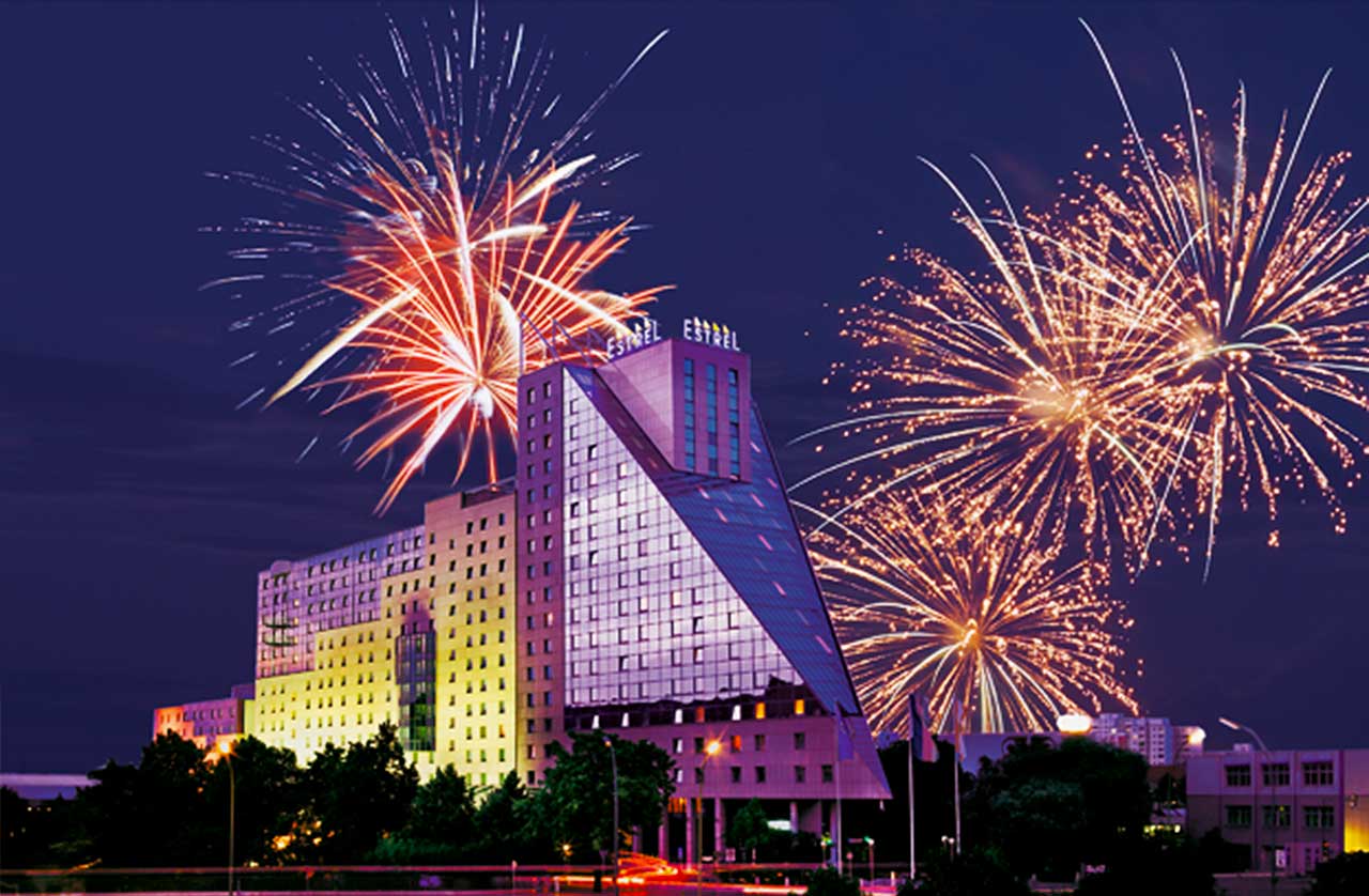 Som en nyhed har vi anskaffet et begrænset antal pladser på dette skønne 4**** Hotel Estrel, som afholder nytårsarrangement d. 31/12.